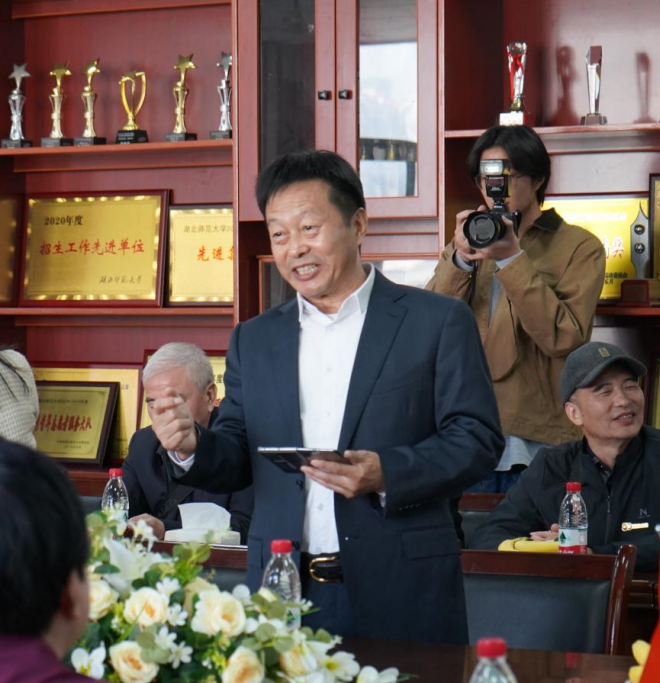 79级校友为学院捐赠了2万元现金。湖南华湘和实业发展有限公司王洪武先生作为校友代表讲话,他回忆了学生时期与老师、同学相处的温情故事,感恩学校的帮助和关爱,他表示,虽然很多同学都退休了,但会继续老有所为,不辜负学校的培养。