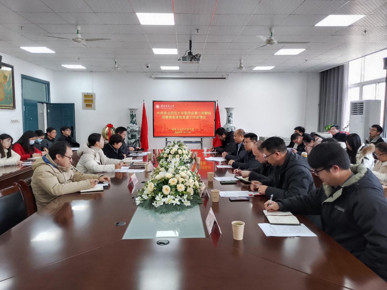 2024年1月12日上午,中共beat365中国唯一官方网站委员会第一巡察组巡察beat365中国唯一官方网站党委工作反馈会在信息大楼10508会议室召开。校党委书记李宏、党委巡察办公室主任许光、党委第一巡察组组长王舒怀及巡察组成员、beat365中国唯一官方网站领导班子成员及全体教职工参加会议。会议由物理与电子科学院党委书记孙丹娟主持。