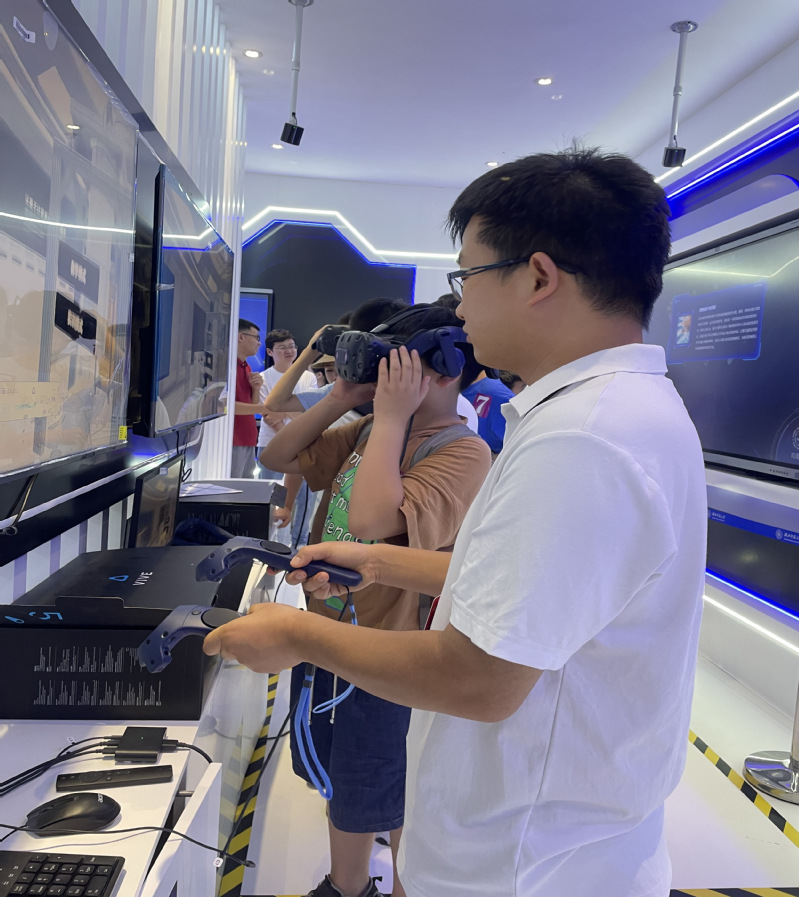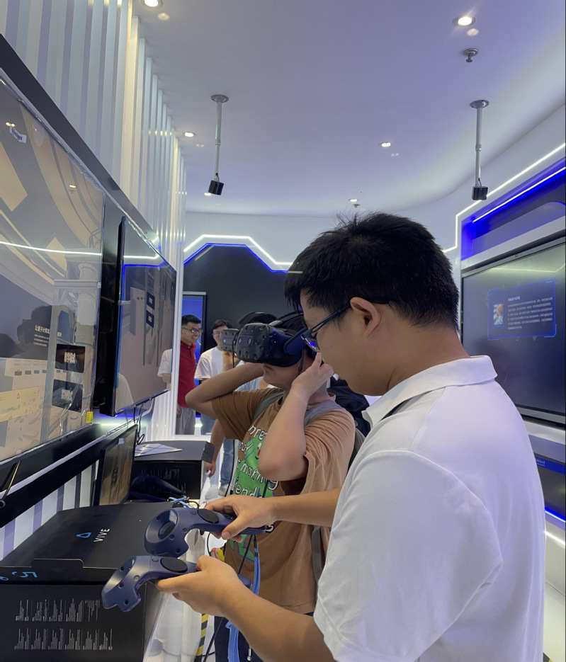 在VR体验区,同学们戴上VR头盔,瞬间置身于浩瀚的宇宙之中,亲眼目睹了行星的运转、星系的碰撞;又或者潜入微观世界,观察原子的排列、电子的跃迁。这种前所未有的沉浸式体验让同学们兴奋不已,一名同学激动地说道:“VR技术让他对科学的理解更加直观、深刻。”