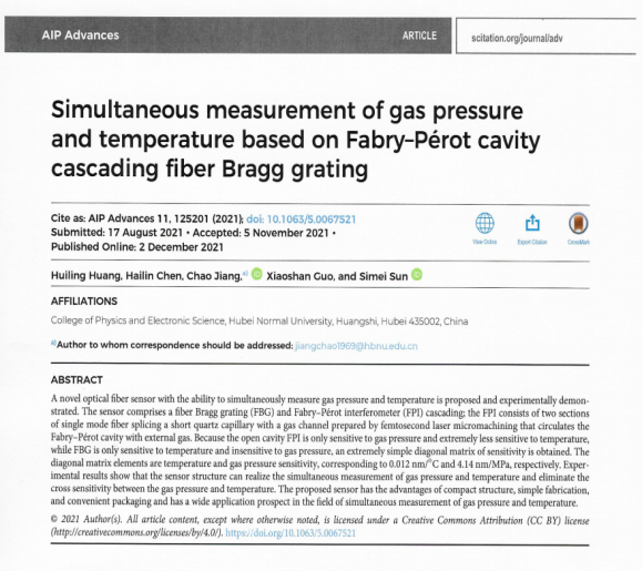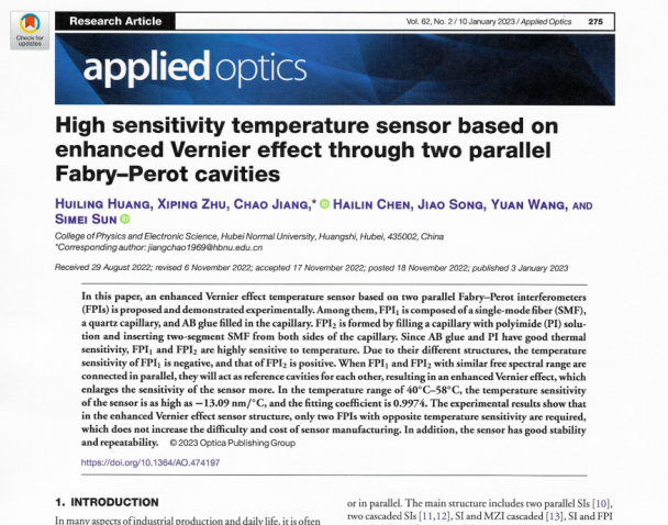 在超额完成教学任务的同时,作为物电学院飞秒激光微纳加工与光纤传感技术团队中的一员,黄老师一直在做光电子器件实验室开展飞秒激光微纳加工和光纤传感器技术的研究工作和学生培养工作。近5年来,公开发表学术论文十余篇。