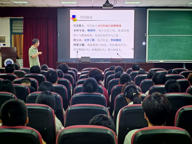 物理学专业指导见面会上,李海超老师围绕“专业情况、专业课程、专业前景”三大核心内容展开讲解,系统介绍了师范专业的培养目标与课程体系,深入分析了教师行业的发展趋势与就业方向。他特别强调“学习学习再学习”,鼓励新生夯实专业基础,提升教学实践能力,为未来成为优秀教师做好准备。
