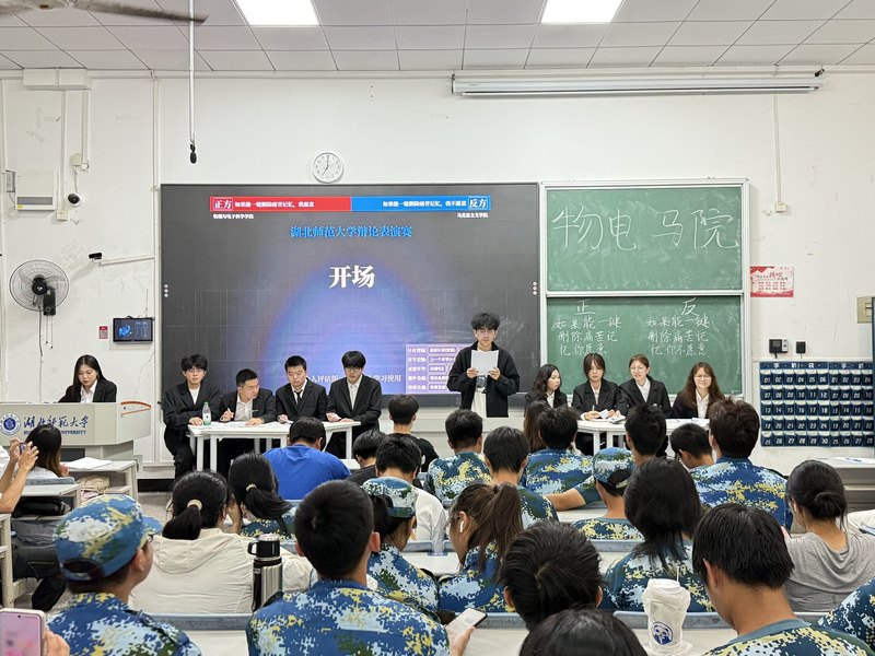 为推广辩论文化,锻炼大学生口才与思辨能力,拓宽知识视野,激发新生辩论热情,9月20日晚,我院联合马克思主义学院于科技大楼9101教室成功举办辩论表演赛。我院郭焱、裴乐、梅李伽霖、张振宇四位同学参赛,王思远担任本场比赛主持人。